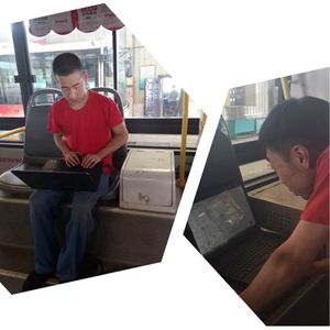 此次技術(shù)比武中,有兩位年輕的技術(shù)骨干,薄海東就是其中一個(gè)。他個(gè)頭兒不高卻能發(fā)揮優(yōu)勢(shì),在需要鉆車底、大個(gè)子進(jìn)不去的地方他都積極向前。而且骨子里也有一股倔強(qiáng)勁兒,他不但各項(xiàng)修理技術(shù)手到擒來(lái)而且用電腦查車輛問(wèn)題也是一把好手,綜合能力突出,體現(xiàn)了新一代公交修理人的風(fēng)采。