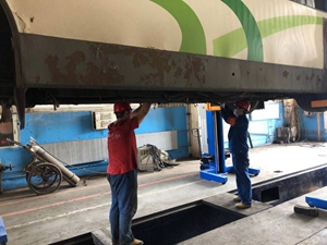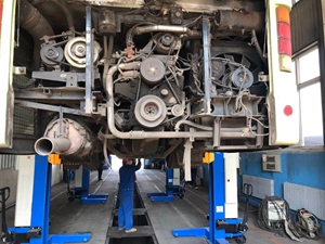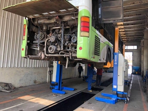隨著新車型的疊新?lián)Q代,傳統(tǒng)的地溝舉升已不能滿足新車型的維保需求,為更安全,便捷地進行車輛各項維保工作,總公司在資金緊張情況下,籌措資金,為修理公司購置4臺充電移動式重卡舉升機,該移動式重卡舉升機采用無線信號連接,蓄電池供電,液壓系統(tǒng)平穩(wěn)安全舉升,不需要固定工位使用,操作人員直立地面維修,操作便捷。