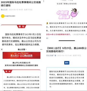 由于賽事期間道路交通管制,涉及到公交68條線路需臨時繞行,為了最低限度避免影響市民出行,總公司根據(jù)道路實際情況,制定了詳細(xì)的繞行方案,對涉及公交的68條線路提前規(guī)劃繞行,并對繞行方案于5月13日提前通過唐山公交、唐山發(fā)布、唐山交警、唐山交通廣播等各大媒體平臺進(jìn)行了公布。