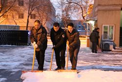 天逐漸放晴,太陽初升,這第一場雪的緊張24小時終于過去,但是并沒有結(jié)束,下午,又有數(shù)百名公交職工走上街頭,清理馬路上的積雪。