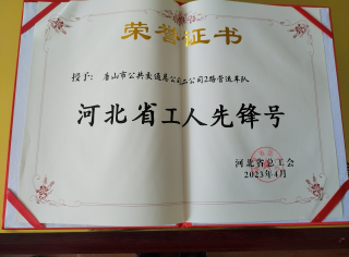 2023年4月28日,河北省總工會授予唐山公交總公司46路駕駛員翟澤明河北省五一勞動獎章,授予唐山公交總公司2路營運車隊河北省工人先鋒號。