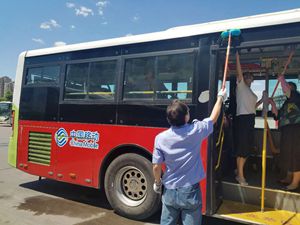 下午,路隊(duì)和分公司管理人員都來(lái)到路線,同保潔員一起清潔車(chē)廂內(nèi)外,清理衛(wèi)生死角。