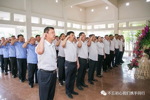 當(dāng)天早上7:40參加此次活動(dòng)的同志驅(qū)車一個(gè)多小時(shí)來到樂亭縣,懷著崇敬之情走進(jìn)李大釗紀(jì)念館。“革命先驅(qū)李大釗英魂永存”,全體黨員首先向李大釗塑像敬獻(xiàn)花籃,黨委書記夏保良上前捋平花籃上的緞帶,并帶領(lǐng)全體黨員行鞠躬禮。在黨委工作部部長周群的帶領(lǐng)下,全體黨員莊嚴(yán)宣誓,在錚錚誓言中堅(jiān)定理想信念、牢記初心使命。