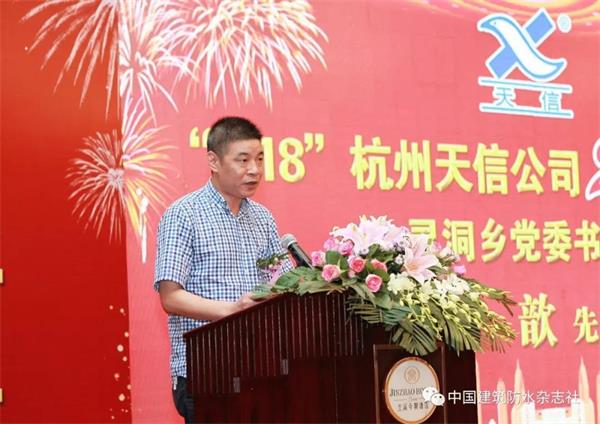 浙江省蘭溪市靈洞鄉(xiāng)黨委書記吳歆到會祝賀,對遠道而來的防水行業(yè)領導和嘉賓表示歡迎。他指出,靈洞是中國的水泥之鄉(xiāng),擁有浙中西地區(qū)最大的水泥生產(chǎn)基地,以及浙江省新型建材工業(yè)專業(yè)園區(qū)。天信從落戶靈洞開始,已成為靈洞支柱產(chǎn)業(yè)的重要組成部分。他指出,在傳統(tǒng)產(chǎn)業(yè)轉型升級的新形勢下,天信公司能提供高質量的產(chǎn)品和服務,加上當?shù)亓己玫墓I(yè)發(fā)展環(huán)境,天信一定能勇開新篇、再創(chuàng)輝煌。
