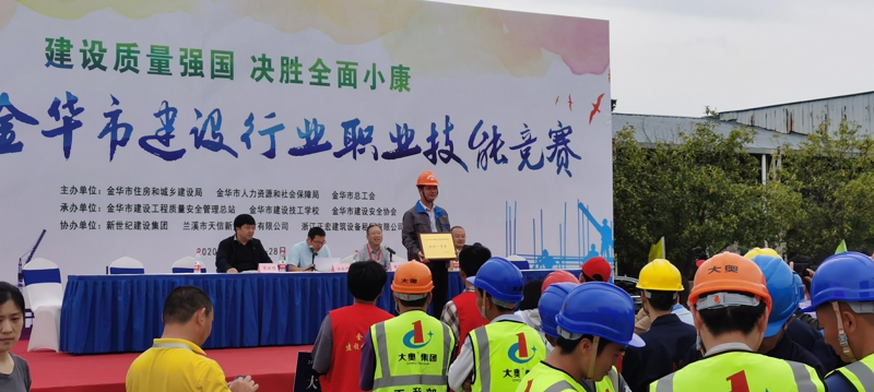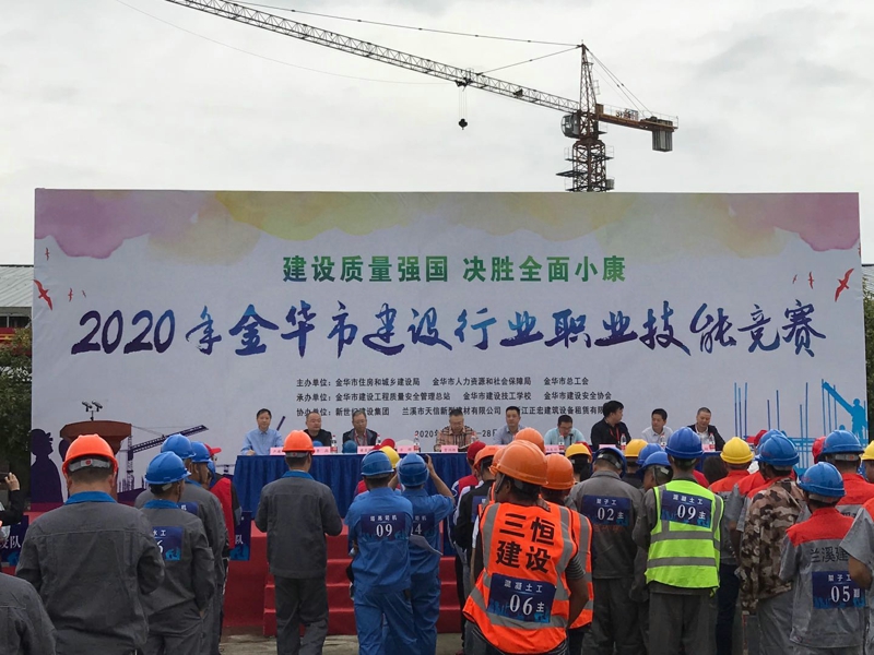 9月28日,由金華市住房和城鄉(xiāng)建設(shè)局、人力資源和社會保障局、總工會聯(lián)合主辦,蘭溪市天信新型建材有限公司、新世紀建設(shè)集團、浙江正宏建筑設(shè)備租賃有限公司協(xié)辦的2020年金華市建設(shè)行業(yè)職業(yè)技能競賽,在金華市土木水利類公共實訓基地隆重舉行。公司總經(jīng)理盧建華作為特邀嘉賓親臨競賽現(xiàn)場觀摩與指導。