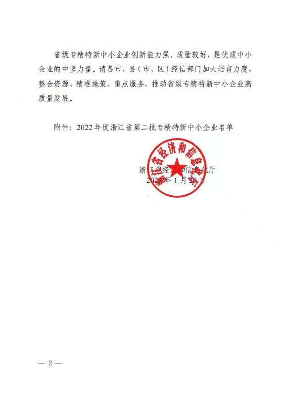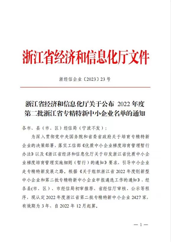 序,現(xiàn)認(rèn)定2022年度浙江省第二批專(zhuān)精特新中小企業(yè)2427家