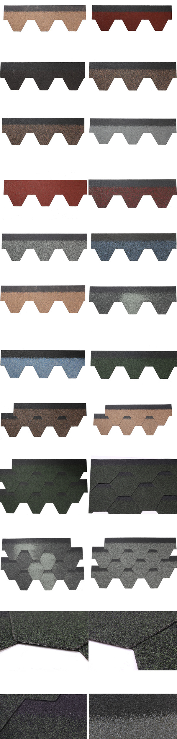 主要功能是保護瀝青表層免受陽光直射,使瀝青不易老化,不受風雨侵蝕,立影牌多彩玻纖瓦采用的是高溫瓷烤顆粒,色彩豐富而優(yōu)雅,增強屋面的美觀度,且永不褪色。