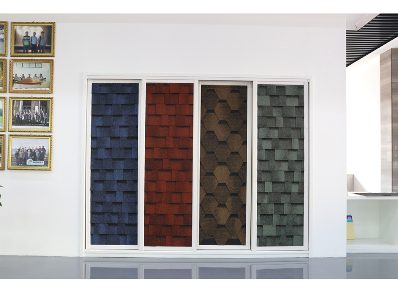 天信多彩玻纖瓦采用的是高克重、高穩(wěn)定性的優(yōu)質(zhì)玻璃纖維胎基,能很好的提高瀝青瓦的強度,耐水性、耐久性、抗裂性、防滲漏性能等,大大提高了玻纖瓦的品質(zhì)及其穩(wěn)定性。